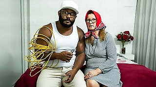 Once again my gf's grannie is willing to give a blowjob until she blows a load on her glasses