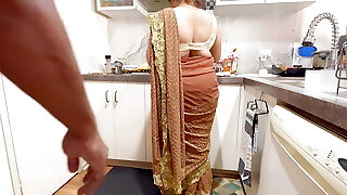 Indian Couple Romance in the Kitchen - Saree Sex - Saree lifted up, Backside Spanked Bra-stuffers Press