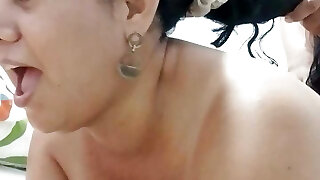 Huge facial for hot Brit granny in her own living room.