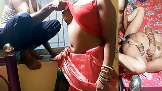 Hot maid wear Saree in front of her malik and sucks Bone and hard ASS Plumb in hindi audio