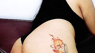 Four eyed slut with curly hair is a passionate masturbator with a sexy backside