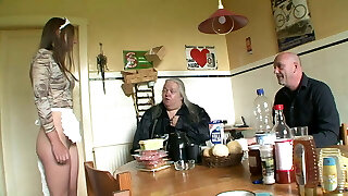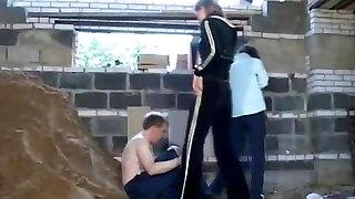 Sweet victim girl ravished by a duo of boners during a BDSM game