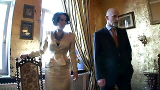 A magnificent-looking brunette French lady loves penalizing her nasty small dick slave