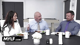 Pretty Hot MILF Wife Fucked, Dominated and Creampied By Hubby's Fat Sausage Boss - MYLF Cheating