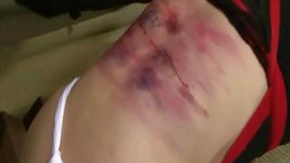 Turning her hefty ass red as he slaps and canes her