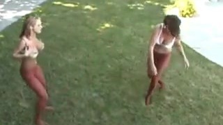 A pool of jello makes the British lesbos with big boobs want to wrestle in it