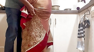 Indian Duo Romance in the Kitchen - Saree Sex - Saree lifted up and Ass Smacked