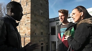 Brutal African man pulverizes skinny blond chick Skylar Green hard