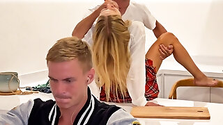 Stepson fucks stepmom in front of cuckold stepfather