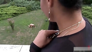 Mistress teaches her slave dog