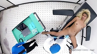 Hot blonde babe gets played in both fuckholes by a female doctor