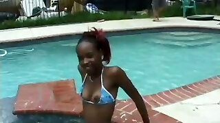 Pool Bunny rides tge Big Dark-hued Cock