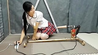 The cheeky collegegirl is fooling around in the classroom with her percussion contraptions