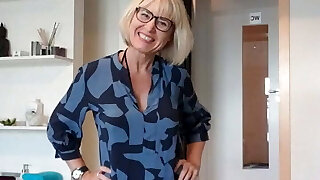 MILF playing with a remote massager at the office