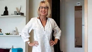 A skinny blonde milf dressed up in fishnets is getting some good fucking from a nasty guy