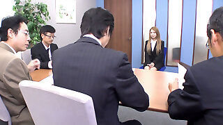 Timid Japanese girlie pleases her kinky chief with solid BJ on her 1st work day