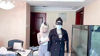 Kinky couple ties up beautiful blondie and undresses her
